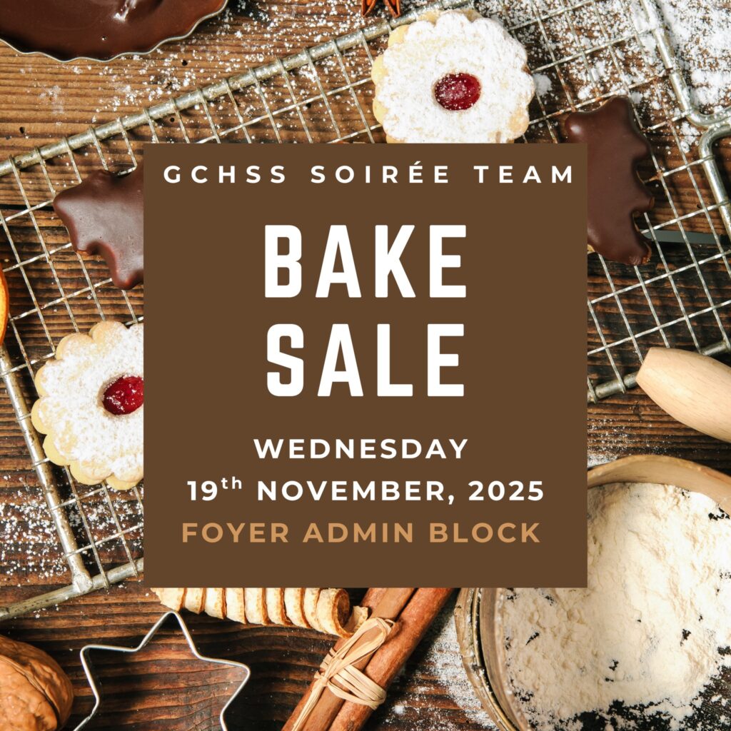 The GCHSS Soirée Team will be organising a Bake Sale on Wednesday, 19 November 2025, in the Admin Block Foyer. Students and staff are invited to support the team by purchasing a selection of homemade sweet treats, with all proceeds going towards the organisation of the upcoming Soirée.